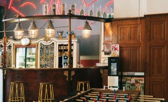 Three Little Pigs Hostel Berlin conta com uma lanchonete/delicatessen onde os hóspedes pode saborear uma refeição. Mate sua sede com sua bebida favorita em um bar/lounge. Há café da manhã (buffet) disponível diariamente, entre 7h30 e 11h, mediante uma taxa.