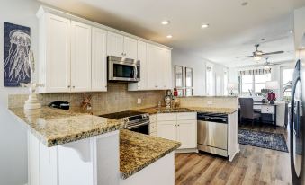 Fully equipped kitchen with new stainless range/stove, microwave, dishwasher, refrigerator, granite counters, and plenty of storage including a full-size pantry. Most small appliances such as a blender, coffee maker, waffle maker, electric griddle, crockpot, toaster oven, and more.