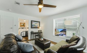 This rental exceeded our expectations in every way possible. The unit was wonderfully modern yet cozy and very well appointed. Spotless and ample room with every amenity you could think of needing inside. The unit is close enough to walk to the downtown square, with sidewalks the entire way.The owners, Jim and Sylvia, were so gracious and very responsive. Such nice people! I literally can't say enough great things about our stay or the owners. Would definitely recommend staying here!!