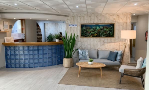 Reservei este hotel através de uma agência de viagens online. Reservei um estúdio superior com cama de casal. Na chegada, disseram-me que, se houvesse alguma reclamação, deveria voltar à recepção. Ao ver o apartamento, pensei que nos tinham atribuído os apartamentos errados; havia dois sofás-cama duros como pedra, uma cozinha compacta, um banheiro satisfatório e a porta da varanda tinha uma persiana de plástico que emperrava na metade. Se você virasse o pescoço para a varanda, conseguiria ver o mar. Em quarenta anos de férias, este deve ser o menor apartamento em que já fiquei. Então, tive que fazer um upgrade para um apartamento super; a um custo de 350 euros, o que foi uma grande parte do nosso dinheiro para as férias, só para conseguir uma cama de verdade. Não temos chaleira elétrica, torradeira ou secador de cabelo. O monitor do meu computador é maior que a TV, que tem 8 canais e nenhum em inglês. O livro de informações no quarto é 98% português, o que não é muito útil. O hotel aceita cães, com vários cães hospedados no hotel. Os recepcionistas, especialmente os homens, não são muito amigáveis (uma saudação e um sorriso seriam legais). O recepcionista mais jovem foi o melhor, sempre prestativo e sorridente.
