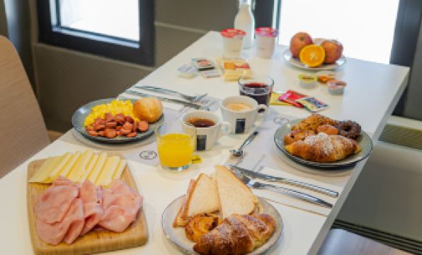 Encomendei uma cama grande, mas consegui 2 camas pequenas juntas, pediram-me um extra de € 10 no check-in sem uma boa razão que não tive escolha a não ser pagar porque era tarde demais para pegar outro hotel, é verdade, não está correto , a pia do banheiro ainda entupida, um ônibus de aposentado espanhol ficou no hotel eles imobilizaram o elevador durante o check out forçados a descer as malas pesadas a pé do 4º andar sem reação na recepção