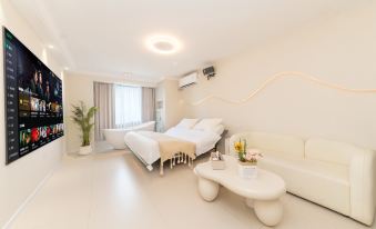 房間是現代簡約風,乾淨無異味,床品柔軟到躺下就不想起,超大窗户讓採光超棒。最驚喜的是巨幕投影和智能客控,晚上窩在沙發看電影,體驗感堪比家庭影院。設施很齊全,洗衣機、免費行李寄存都有,自助入住模式既便捷又保護私隱,客服響應也很及時。